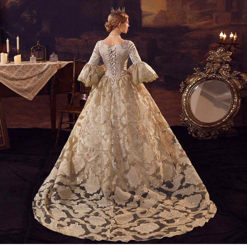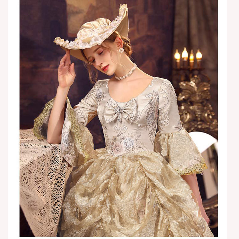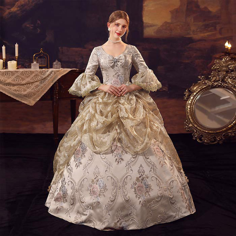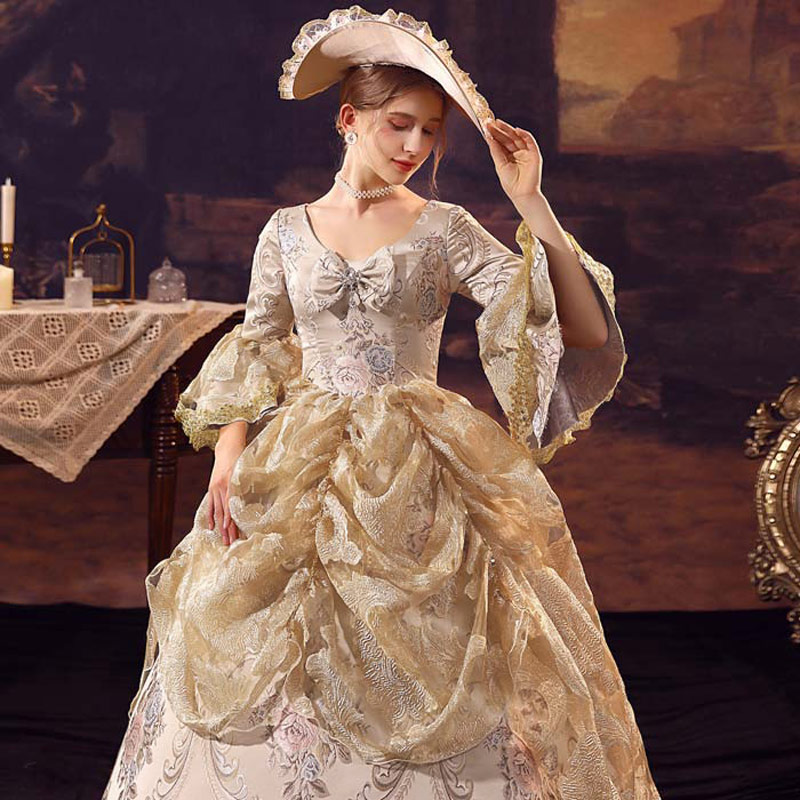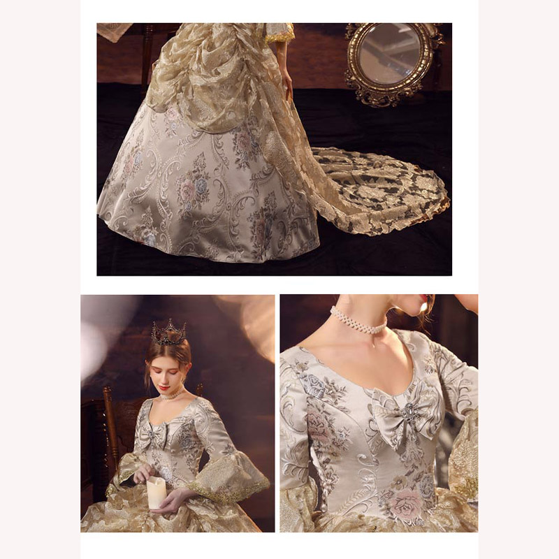 華麗な 宮廷ドレス お姫様ドレス レディース タキシード ロングドレス ロココ 貴族ドレス 18世紀 ジャガード織 シャンパン 中世ヨーロッパ お姫様 プリンセスドレス サイズ指定OK 西洋ドレス ステージ衣装 貴婦人 オペラ ワンピース