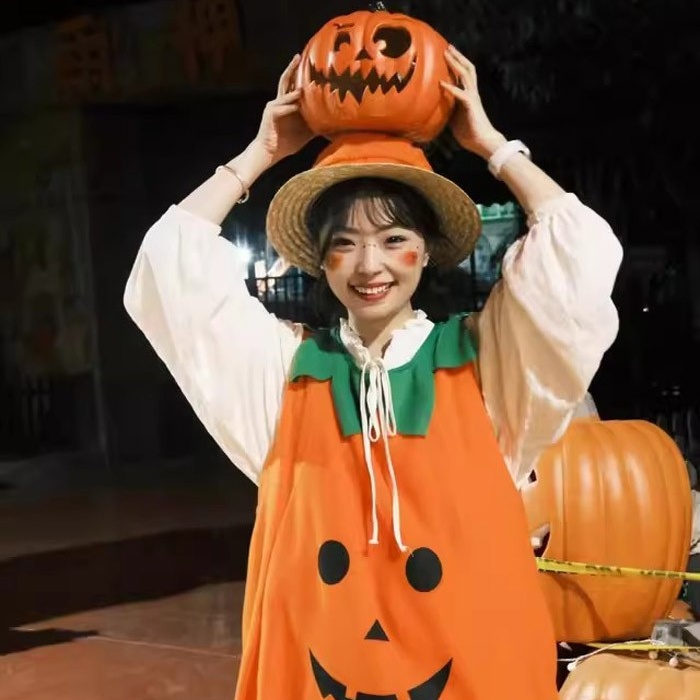 ハロウィン 仮装 コスチューム かぼちゃ 衣装 レディース メンズ キッズ フリーサイズ パーティー 学園祭 イベント コスプレ グッズ ヘアバンド追加可