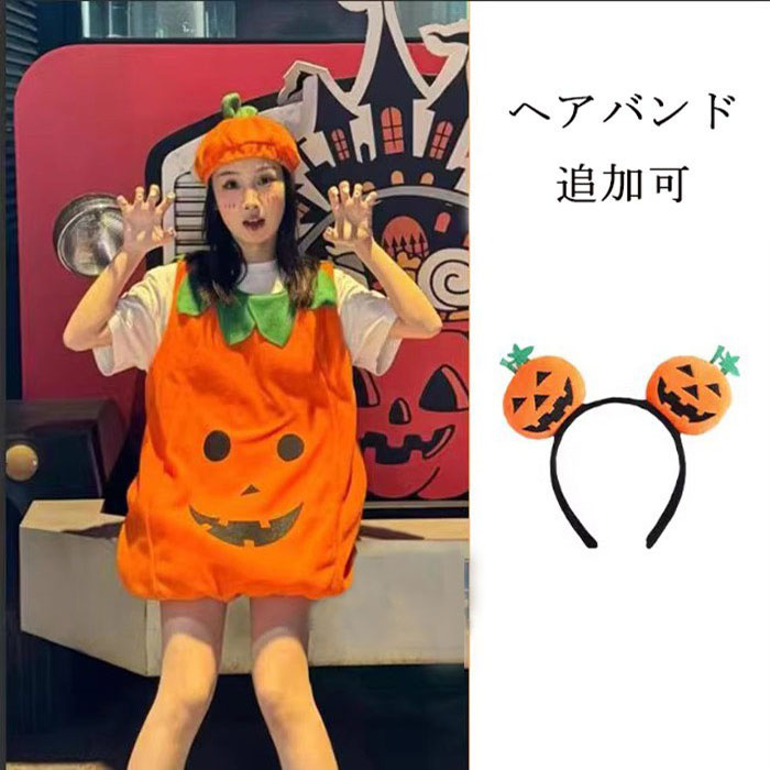 ハロウィン 仮装 コスチューム かぼちゃ 衣装 レディース メンズ キッズ フリーサイズ パーティー 学園祭 イベント コスプレ グッズ ヘアバンド追加可 mj005ld