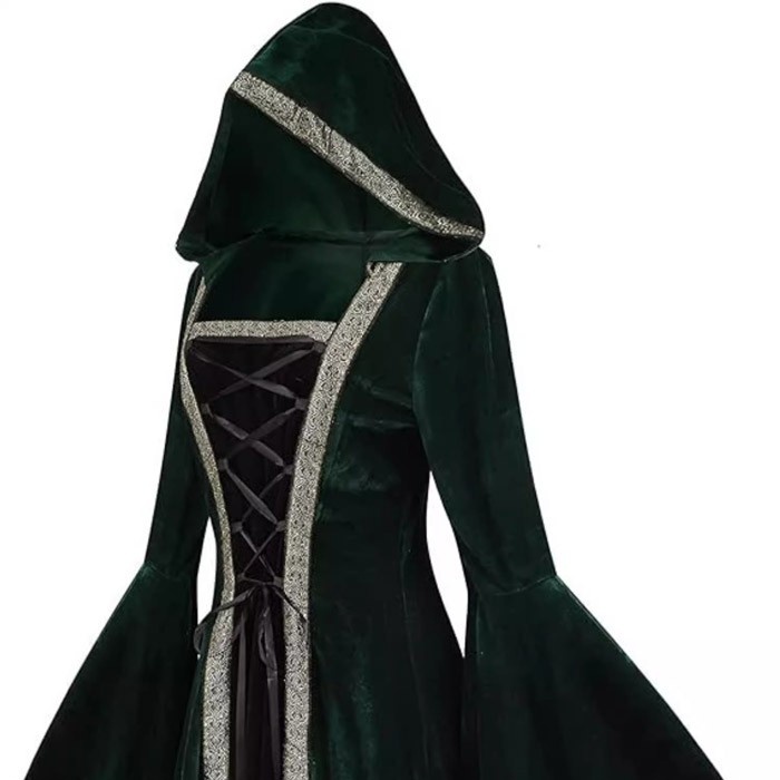 中世 ヨーロッパ風 ワンピース ドレス レディース ハロウィン コスプレ 魔女風 衣装 演劇 ステージ衣装 ベルベット調 フード付き 長袖 S〜5XL 大きいサイズ ブラック×レッド ブルー×パープル パープル グリーン×ブラック