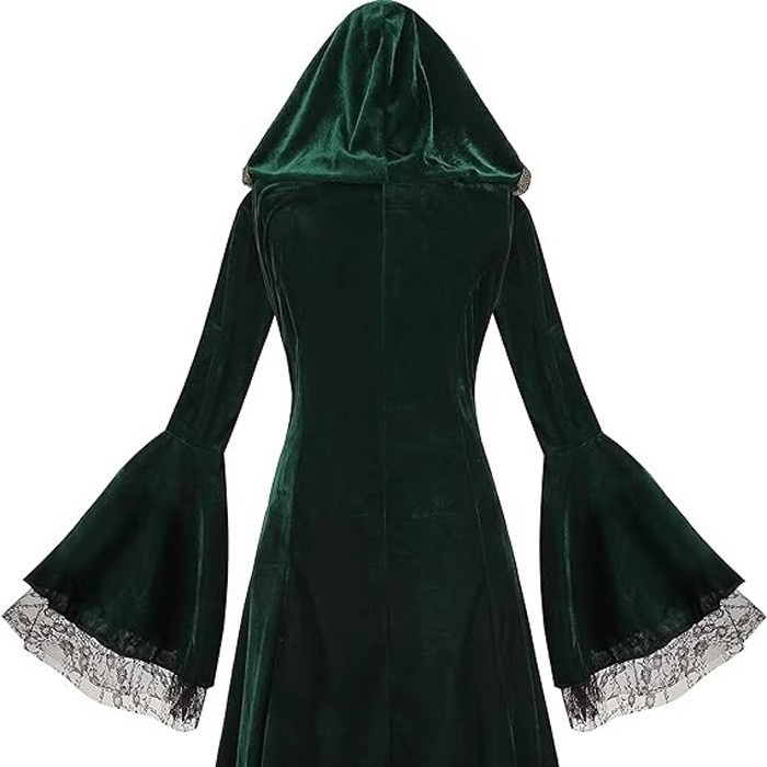 中世 ヨーロッパ風 ワンピース ドレス レディース ハロウィン コスプレ 魔女風 衣装 演劇 ステージ衣装 ベルベット調 フード付き 長袖 S〜5XL 大きいサイズ ブラック×レッド ブルー×パープル パープル グリーン×ブラック mj002ld