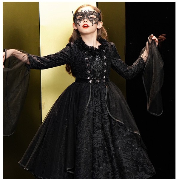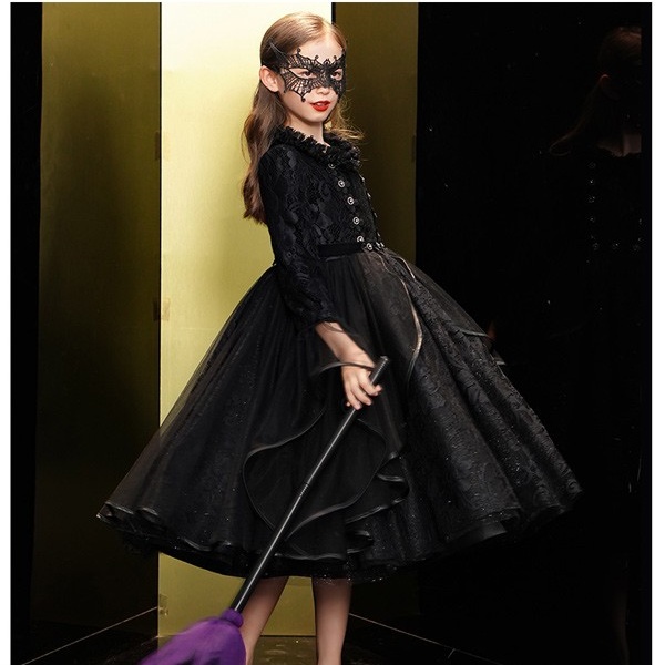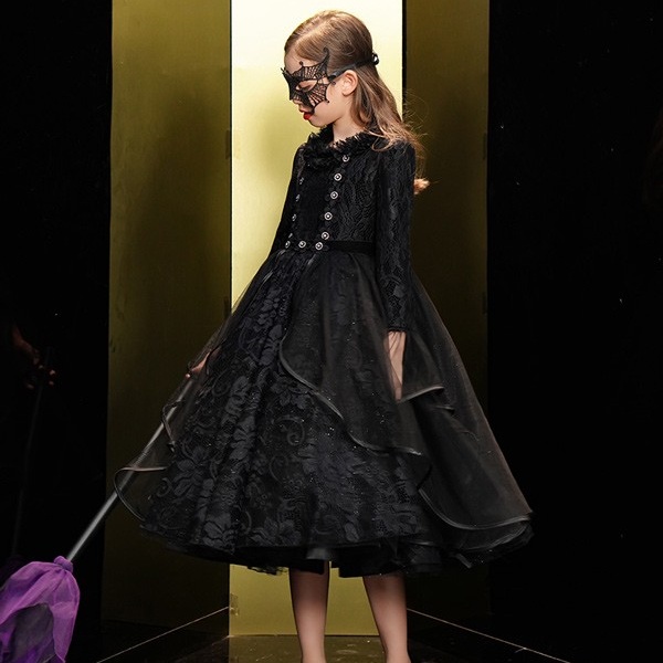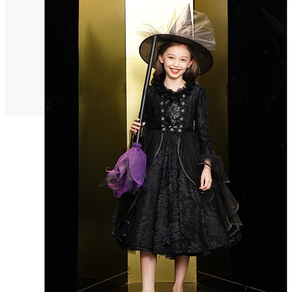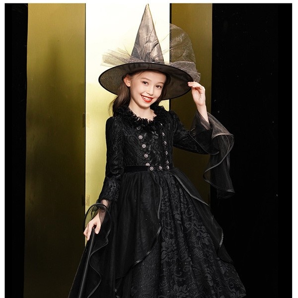 ハロウィン キッズドレス ドレス レディース 親子お揃い 魔女 ウイッチ ハット ロングドレス 袖あり 長袖 ロング丈 コスプレ コスチューム衣装 子供ドレス パーティー 上品 エレガント 女の子 子供 かわいい 演出 イベント ブラック 黒 100 110 120 130 140 150 160 S M L XL ni988m4