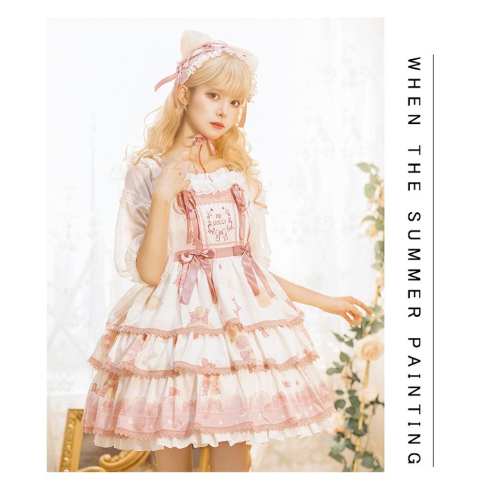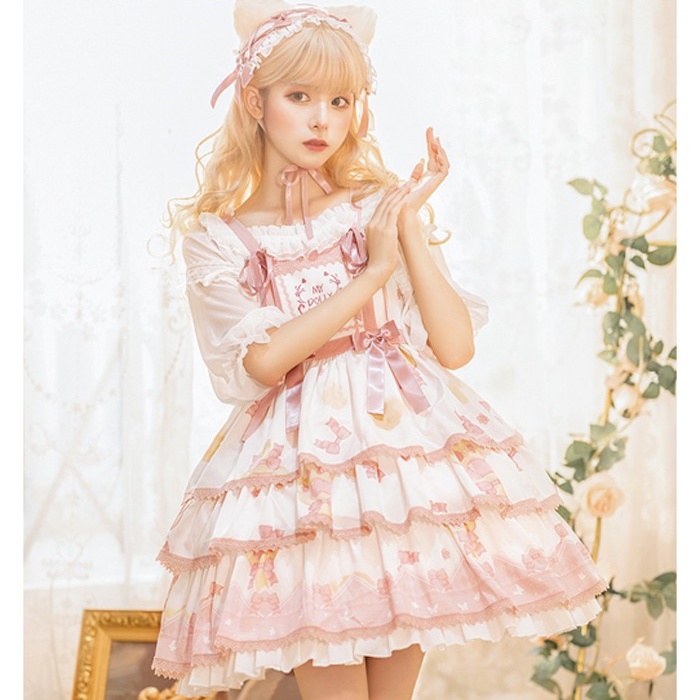 レディース ロリータ ワンピース,JSK 優しい 夏 ビッグサイズ cosplay キャミソールスカー 制服,女の子ポンポンスカートドレス,ハロウィン コスプレ演出服,かわいい メイドカフェ 婦人服