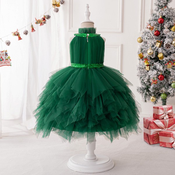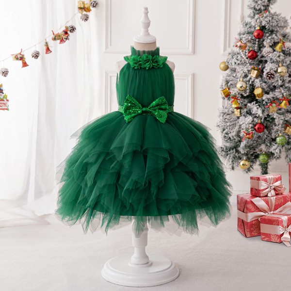 キッズドレス クリスマスツリー風 パーティー リボン ドレス 膝丈 ノースリーブ 袖なし コスチューム衣装 子供ドレス パーティードレス カラードレス ワンピース お姫様 女の子 子供 かわいい ステージ 演出 イベント 写真用 グリーン 110 120 130 140 150 mm077m4