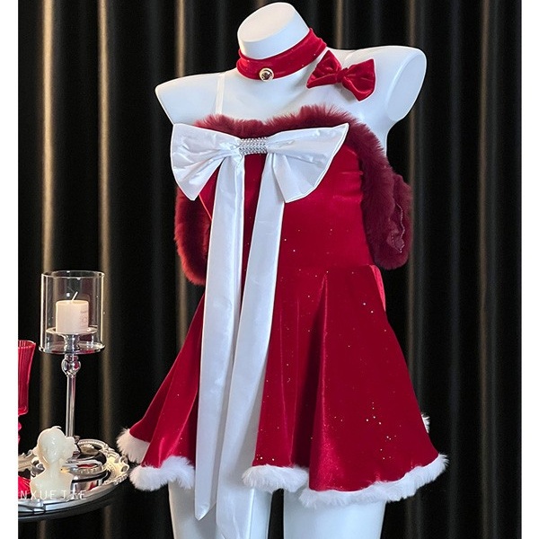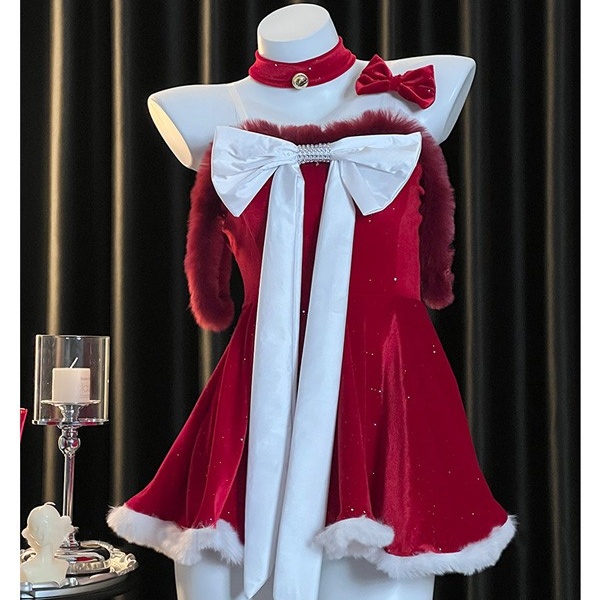 サンタ コスプレ レディース ワンピース リボン Xmas クリスマス 冬 仮装 イベント 衣装 サンタ サンタクロース 赤 サンタコス エロ 可愛い コスチューム パーティ mm001zb