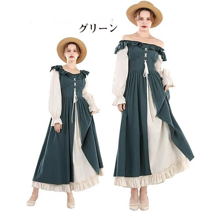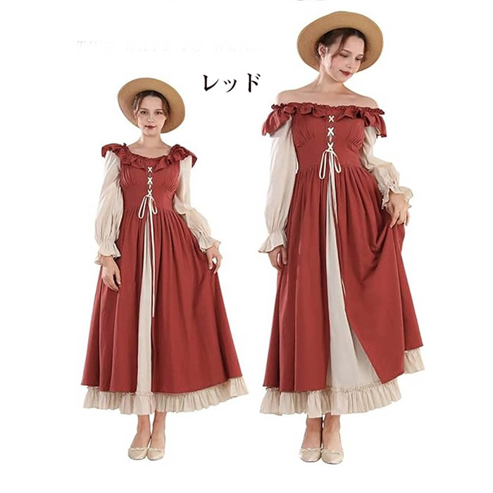 お姫様ドレス コスプレ 貴族風 ロングワンピース オフショルダー リボン付き レディース S〜5XL 撮影会 舞台衣装 発表会 学園祭 文化祭 クリスマスイベント 衣装 フリルドレス